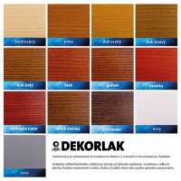Dekorlak sa dodáva bezfarebný a tiež v škále 14-tich odtieňov.