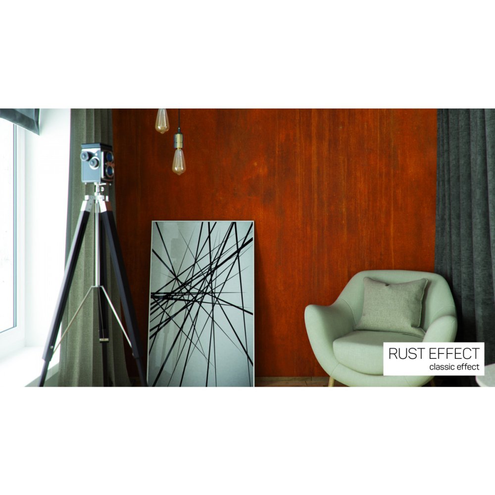 Na riadne pripravený podklad valčekom aplikujte raz alebo dvakrát základný náter CAMEPRIMER P300. Pred aplikáciou efektu RUST EFFECT CLASSIC, nezabudnite základný náter CAMEPRIMER P300 zafarbiť pigmentom Cameleo (2 ml pigmentu č. 16 pre balenie 0,8 l).