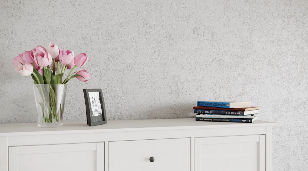 Dekoratívny betón na stene bude obsahovať charakteristické póry a dutiny, ktoré pripomínajú skutočný betón. Imitácia betónu je možná vo viacerých odtieňoch.
