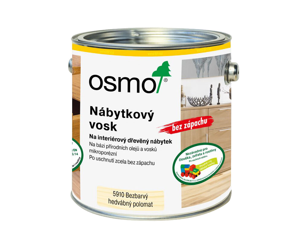 Osmo Nábytkový vosk 5910 je finálny náter na interiérový drevený nábytok, bez zápachu.