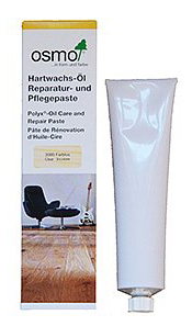 Osmo Tvrdý voskový olej - opravná a údržbová pasta je bezfarebná kombinácia vosku a oleja určená na opravu drobných poškodení všetkých drevených povrchov ošetrených Tvrdým voskovým olejom vo vnútorných priestoroch ako napr. nábytkové plochy a pracovné dosky z masívneho alebo lepeného dreva (napr. kuchynské pracovné dosky, písacie stoly, police atď.)
