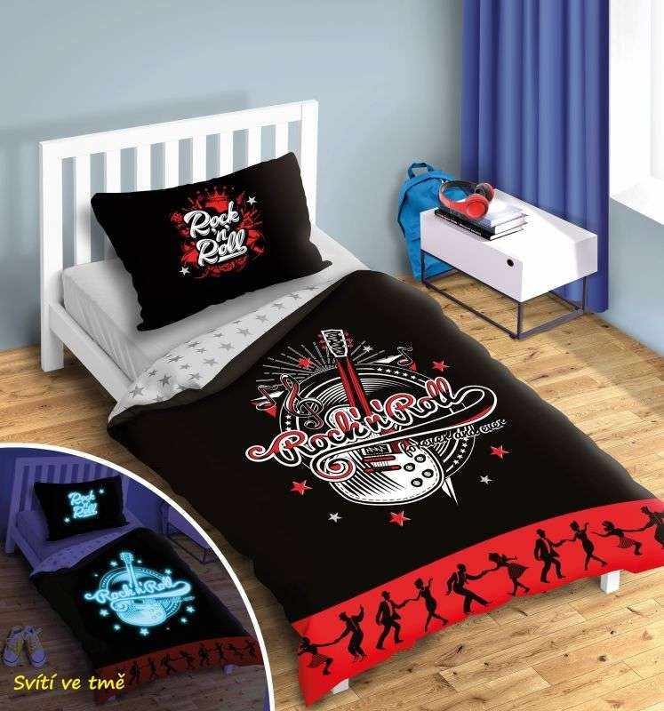 - Posteľné obliečky Rock and Roll svietiace v tme