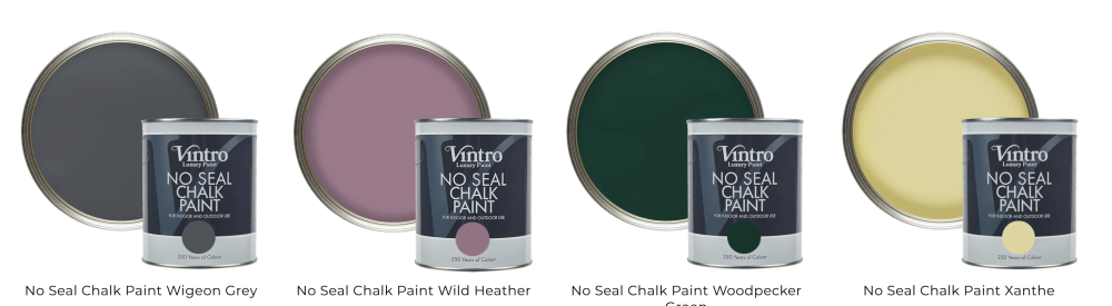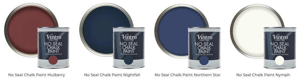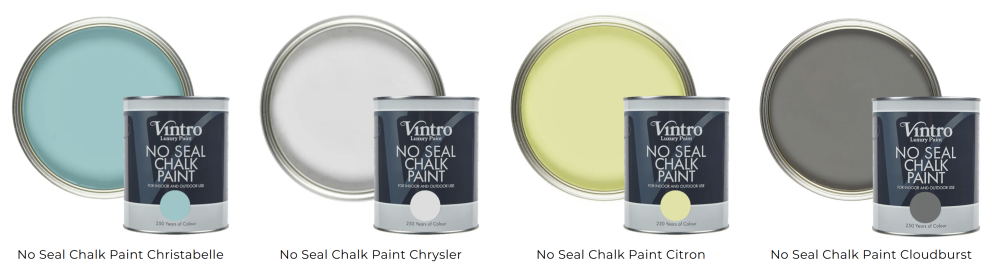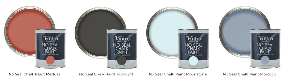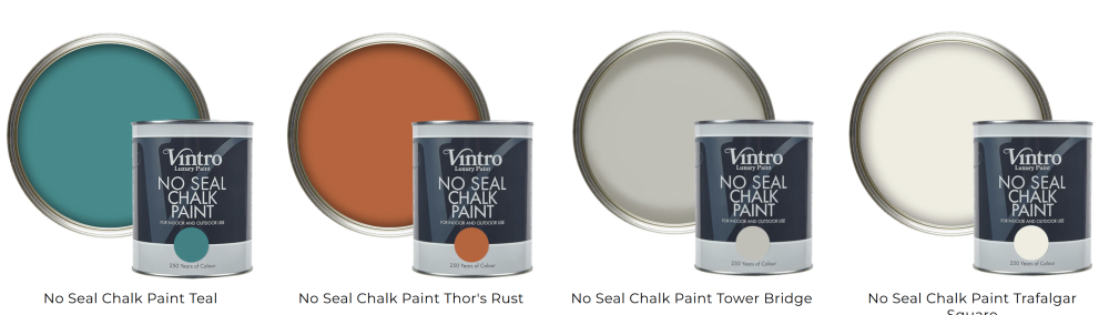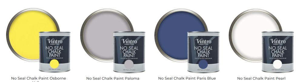 Vintro No Seal Chalk Paint je našou revolučnou farbou na nábytok, ktorá môže byť použitá v interiéri alebo exteriéri a nevyžaduje si voskovanie alebo lakovanie.